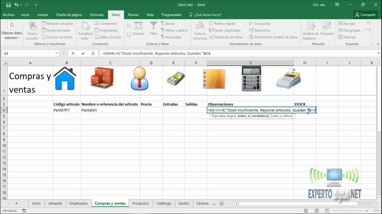 Vamos a trabajar ahora con la Función SI en la parte de nuestra aplicación que nos avisará de forma automática cuando hay que reponer los productos. Contar con esta clase de automatización hace toda la diferencia a la hora de trabajar con grandes volúmenes de información.