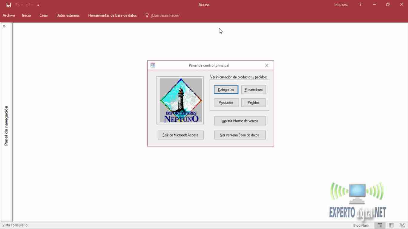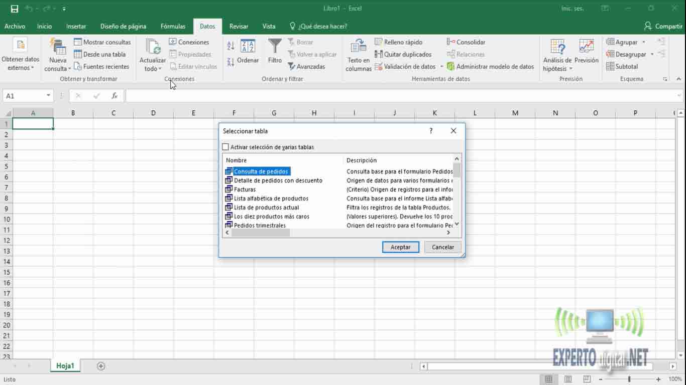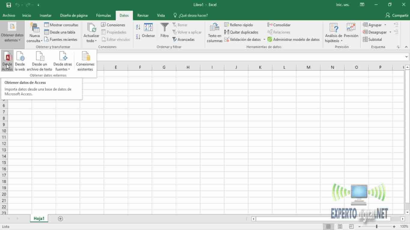 El segundo requisito es tener un archivo de Excel abierto, en blanco, sin datos. El programa informático que se usará para este ejemplo es el llamado «Neptuno» que no es de una empresa verdadera, sino que fue creado por la gente de Microsoft, como ejemplo de las posibilidades que Access permite.