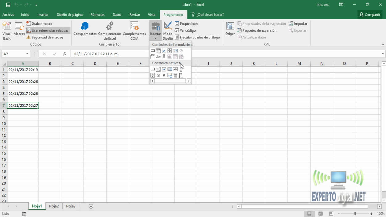 Para hacer esto, lo primero que debemos realizar es activar una ficha de la cinta de opción que tal no tengan visible: la ficha “Programador”. Esta ficha tiene todas las herramientas que necesitamos para encarar esta actividad de manera exitosa.