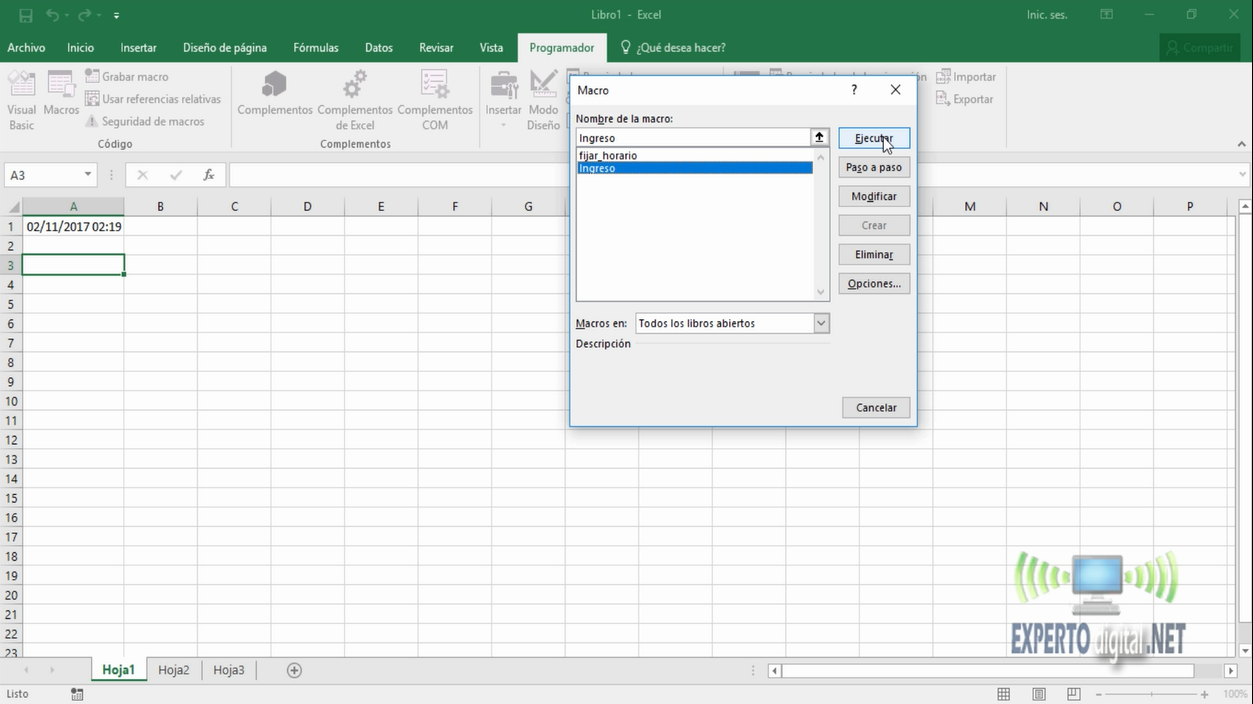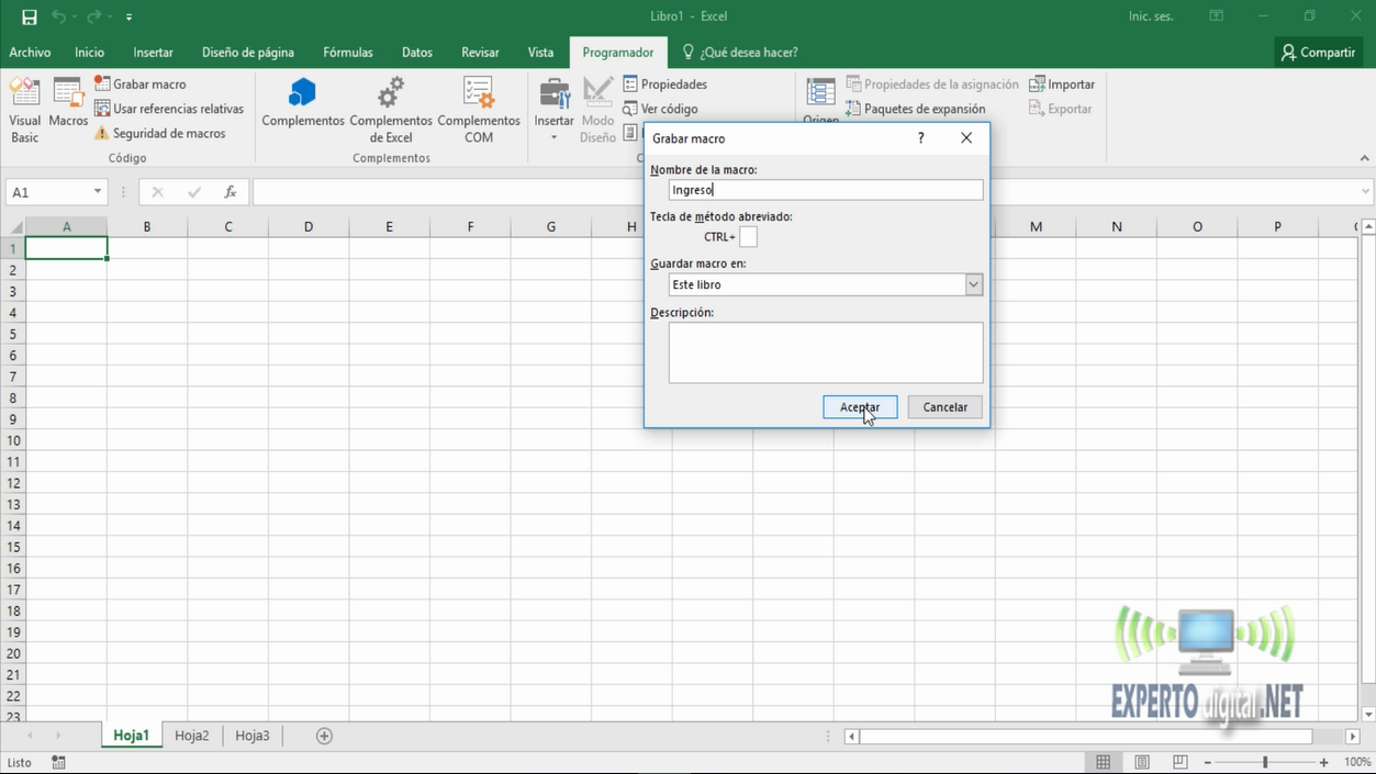 Entonces, a esta macro vamos a ponerle un nombre que describa lo que hace. Así que se llamará “Ingreso”
