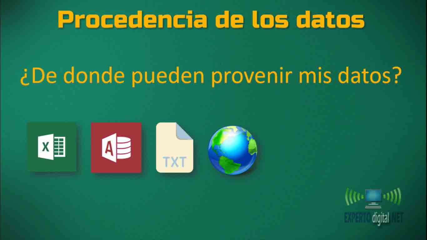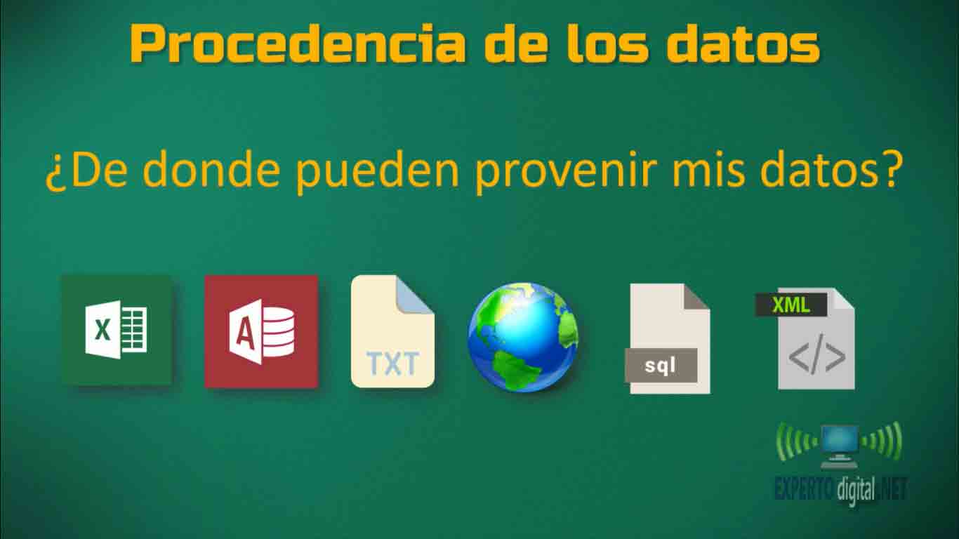 Los datos con los que trabajaremos pueden provenir de distintas fuentes: pueden venir de archivos de Access, archivos de texto y de otros formatos. Vamos a mostrar desde donde importarlos.